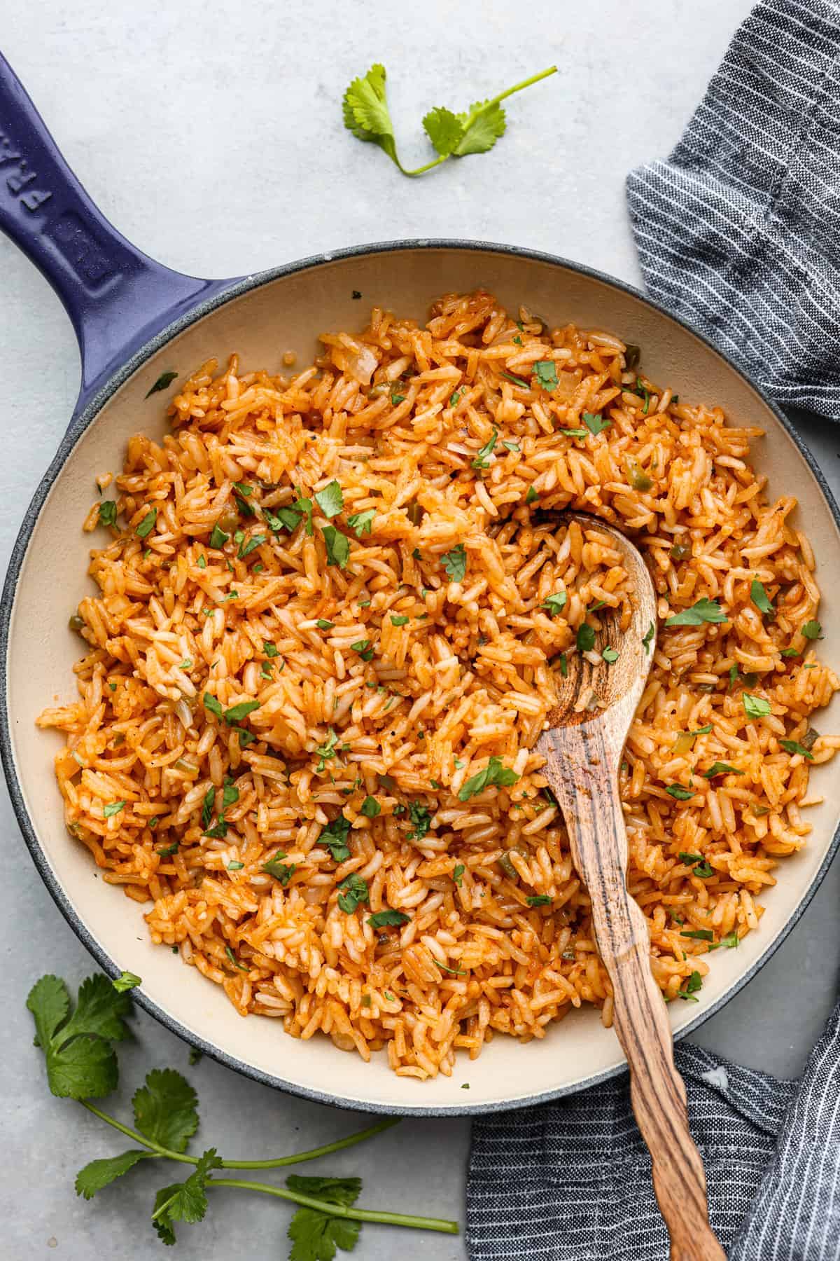 The best part about this rice is how many ways you can serve it. It’s delicious served inside of a street taco or a beef burrito. I absolutely love serving it with grilled steak fajitas because it brings the dish so much extra flavor. The flavor is really similar to Mexican rice, so you can use it interchangeably! It’s so versatile and easy to use, you will love having this rice in the fridge for leftovers.
