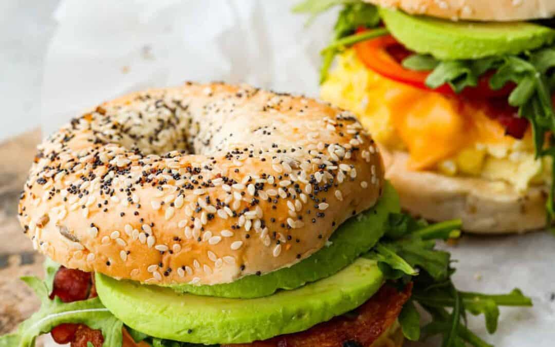 These sandwiches are top-notch delicious. If you have a problem with bagels, I don’t know what to tell you except they are delicious and actually not that bad for you compared to a lot of other breakfast choices. Especially if you make your bagels at home, they are a simple bread with only a few ingredients that make the perfect base for your other ingredients. You will layer on delicious scrambled eggs, flavorful bacon, and fresh avocado slices for the perfect bite every time. English muffin sandwiches have nothing on this recipe! Although, if you do love a good breakfast sandwich, my English muffin recipe is really good too,.