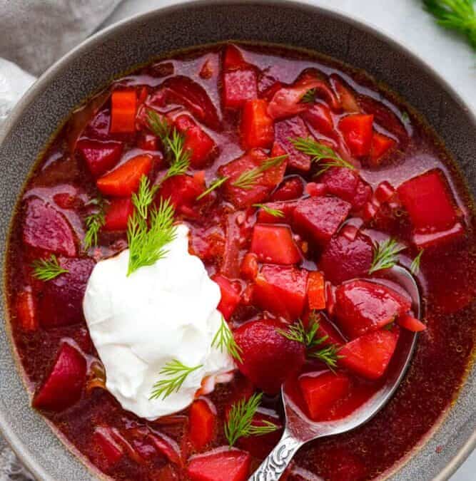 Borscht: the perfect soup for when you want to feel healthy but need something packed with flavor. It’s like a hug in a bowl, if that hug was made of beets and potatoes. This tasty Ukrainian soup will become a new family favorite!