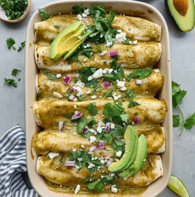 Chicken Enchiladas with an Avocado Cream Sauce is a delicious and easy weeknight meal that everyone will love. They are packed with flavor and drizzled with a sauce that dreams are made of. If you love avocados, this recipe is for you!