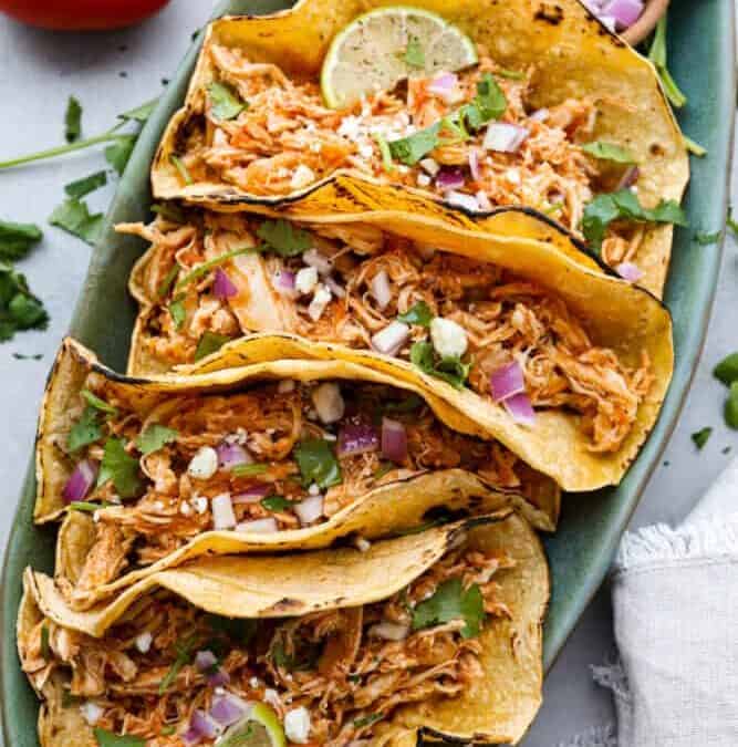 Mexican food is just divine. The meats are always so tender and flavorful, thanks to all of the delicious spices and seasonings they’re slow-cooked in! After you try chicken tinga, you’ll have to make some shredded sweet pulled pork or chorizo for your next taco night!
