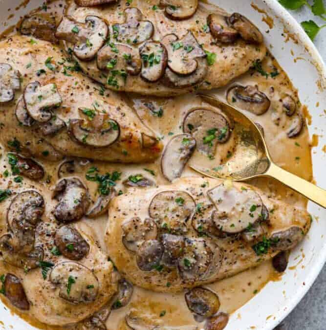 Creamy Chicken Marsala is a classic Italian dish that is ready in under 30 minutes! Marsala wine is made into a creamy sauce paired with mushrooms for the ultimate savory bite. It’s simple and easy to whip up and sure to be a crowd-pleaser!