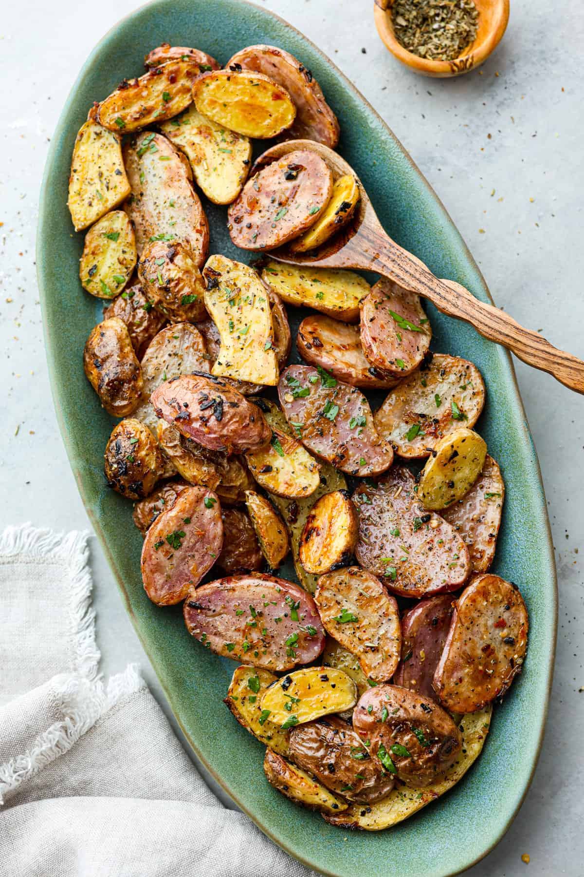 - Fresh Herbs: Potatoes taste amazing with fresh herbs on top. You can add things like rosemary, thyme, and parsley before you pop them in the oven. You may want to add parsley after you pull it out of the oven because it can burn. It also adds a fresh pop of color that makes these look even more delicious.