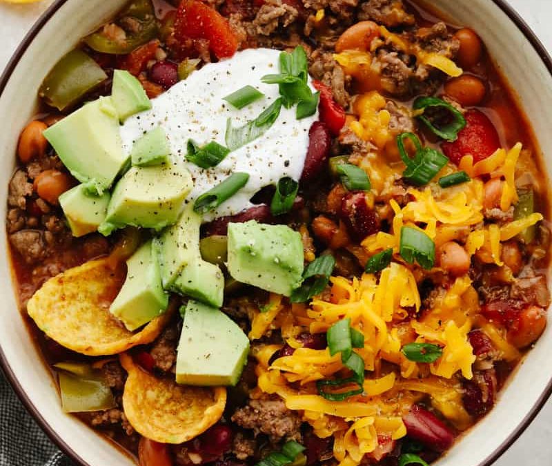 I’ve come up with a list of a bunch of delicious things that you can add to your crockpot chili! Try a couple or try them all. You really can’t go wrong with too many toppings!