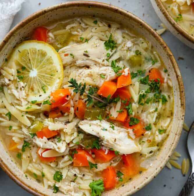 If you want a bright, light and filling dinner, then this lemon chicken orzo soup is for you! A savory and vibrant lemon chicken broth combined with orzo pasta is the perfect pair for a flavorful and delicious soup that is as satisfying as it is tasty.